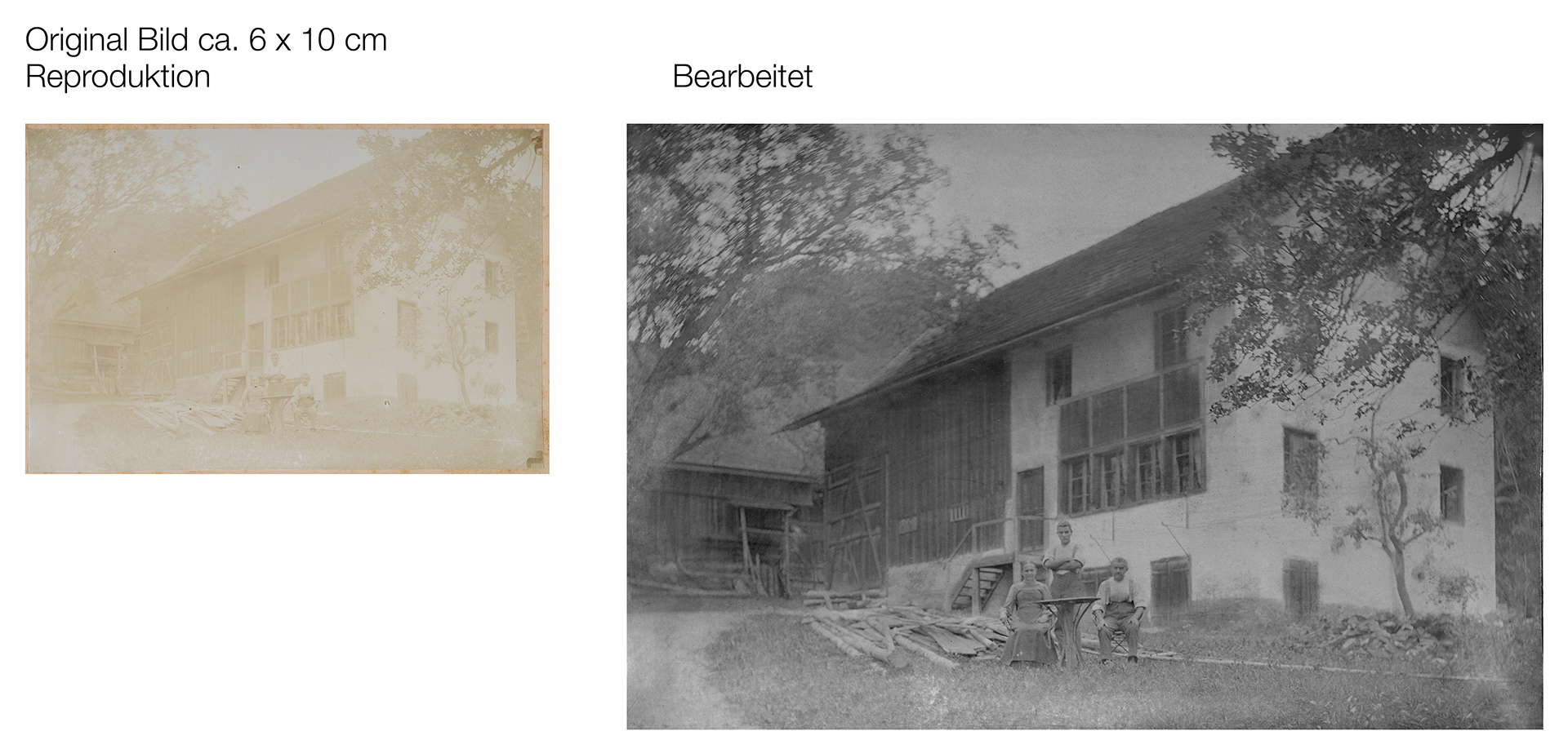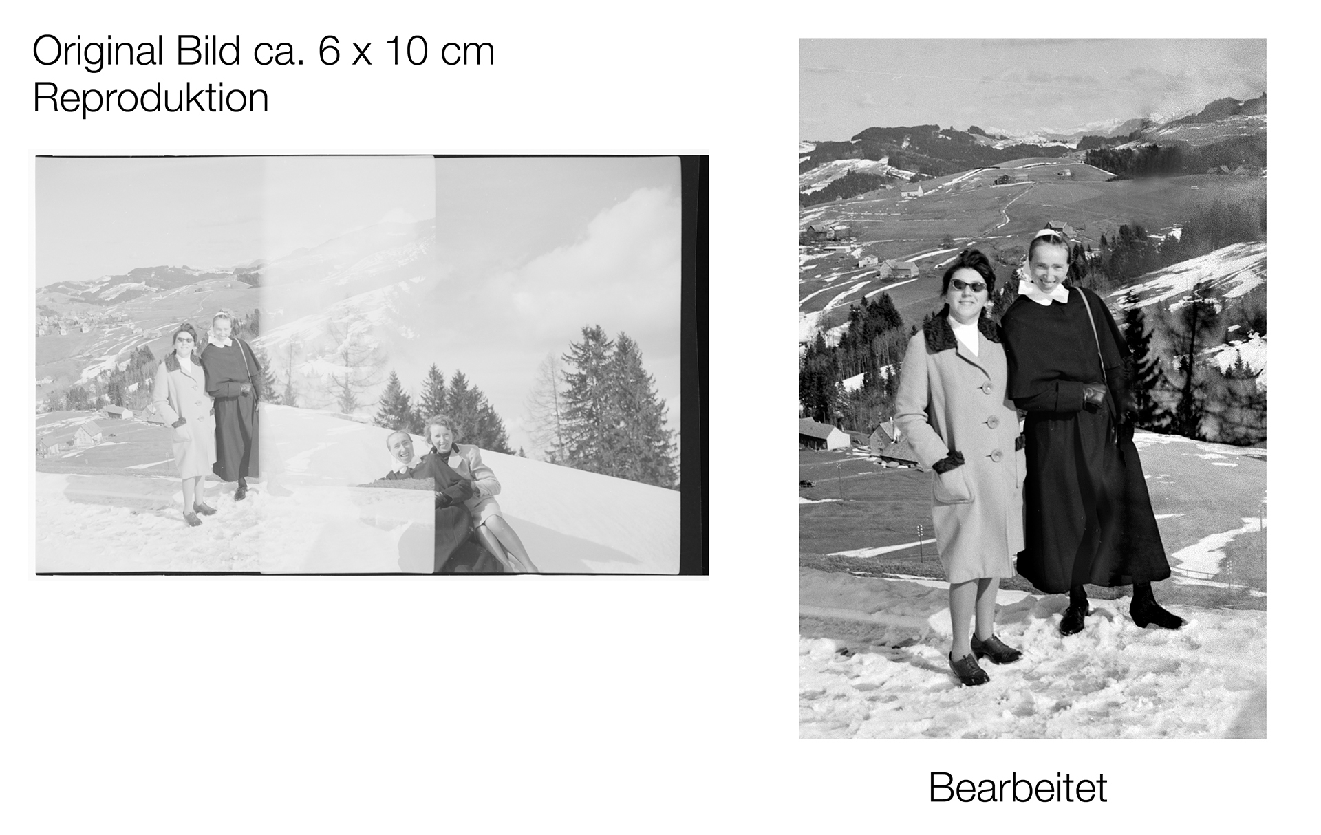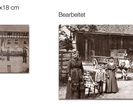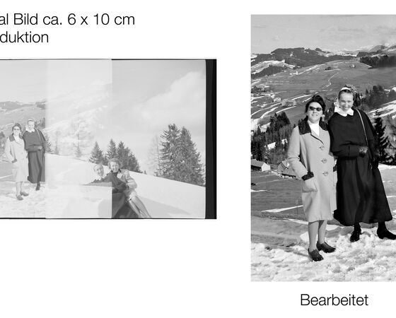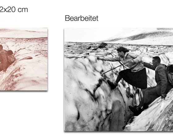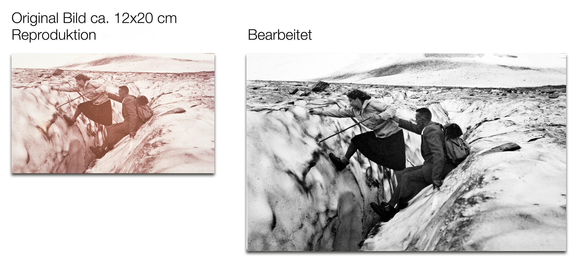 Nichts ist für immer geschaffen, aber der Fotograf kann das bestehen von Bilder und Dokumenten auffrischen und deutlich verlängern. Der Zahn der Zeit nagt ganz im Stillen, Bilder werden beschädigt, verlieren Farben und verblassen fast ganz...?! So lange etwas in seinen Grundelementen noch erkennbar ist, nimmt der Fotograf diese Herausforderungen gerne an. Mit all seiner Erfahrung, den entsprechenden Geräten und grosser Hingabe, repariert er verloren geglaubtes zu neuem Erscheinen. Lassen Sie sich überraschen.